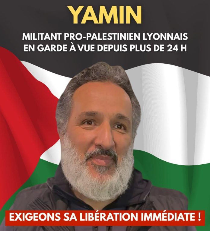 Le mardi 17 juin a eu lieu un nouveau rassemblement pour exiger la libération immédiate de Yamin, militant propalestinien arrêté à Lyon pour son soutien à la Palestine et qui s’apprêtait a passer une seconde nuit au poste de police.