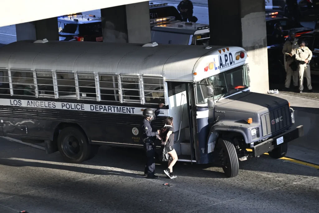 Depuis le 6 juin, une série de manifestations et émeutes ont éclaté à Los Angeles en réaction aux raids menés par la police de l’immigration (ICE), qui cible en masse des migrants soupçonnés d’être en situation irrégulière pour les emprisonner puis les déporter. Ces arrestations sont parfois même effectuées sur leur lieu de travail. Face aux émeutes, Trump a déployé la Garde nationale sans l’accord du gouverneur de l’état, une première depuis 1965, au motif de « rébellion contre l’autorité du gouvernement ».