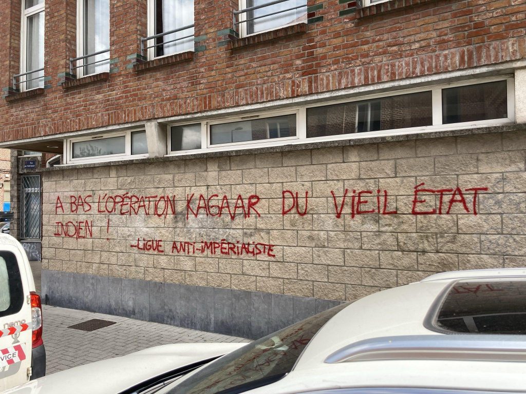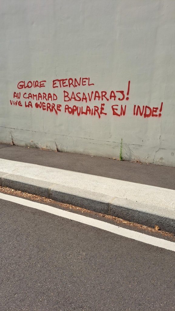 Cette semaine, des actions d’affichage ont été menée dans une quinzaine de villes du pays, au nom de la Ligue Anti-impérialiste. Ces collages ou graffs arborent les mots d’ordre de la Ligue, mais aussi des messages de soutien à la Guerre Populaire en Inde, saluant le Secrétaire Général du Parti Communiste d’Inde (maoïste), Basavaraj, qui avec 25 de ses camarades a donné sa vie pour la révolution au mois de mai 2025. La multiplication de ces initiatives annoncent le lancement prochain de la future section française de la Ligue. Nous resterons attentifs aux prochains développements, que nous pourrons couvrir ici.