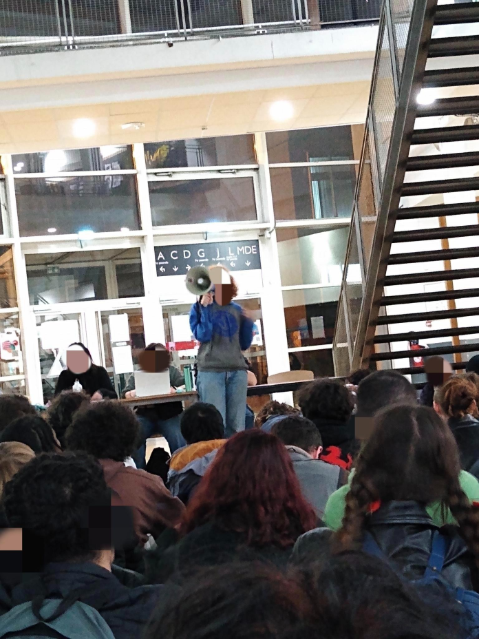Ces intimidations n’ont en rien marché : ce sont pas moins de 250 étudiants qui se sont massés à 18h pour assister à l’Assemblée Générale qui s’est déroulé dans un hall d’un des bâtiments.