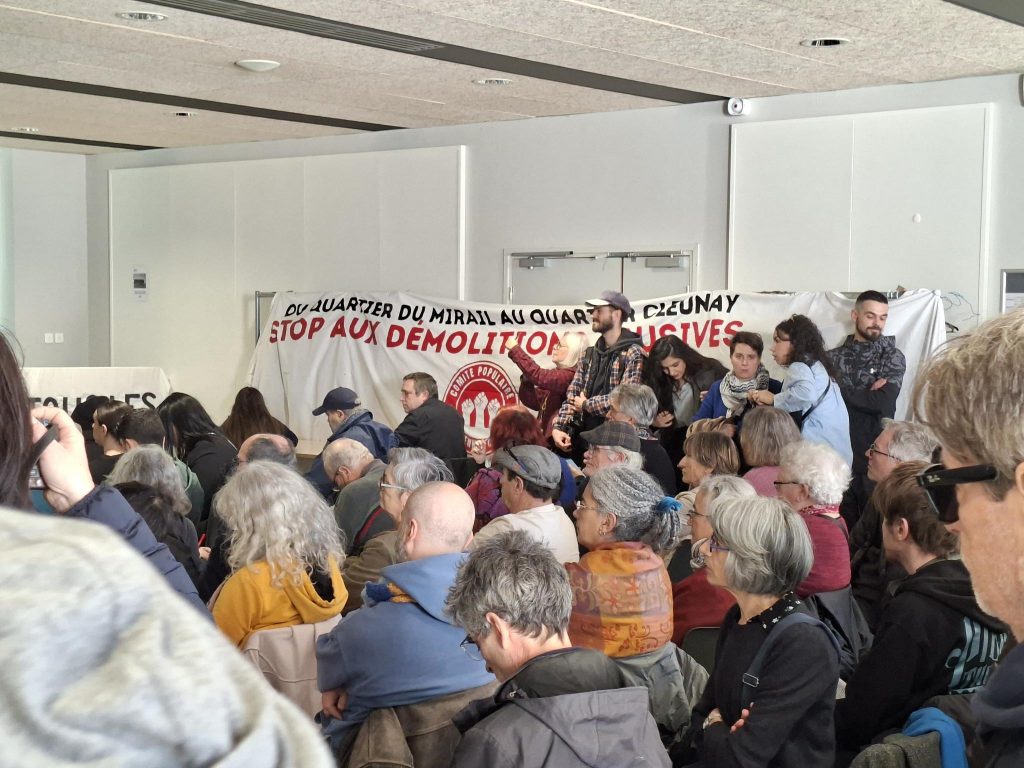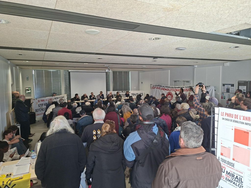Ce samedi 07 février, à l’appel du CPES (Comité Populaire d’Entraide et de Solidarité) du Mirail, du collectif des architectes en défense du patrimoine CANDILIS au Mirail, du collectif STOP DEMOLITIONS, du CNL 31, du DAL31, du conseil citoyen Reynerie, de la LDH, de la Libre Pensée 31, avec des universitaires et des architectes ; s’est tenu un grand débat sur les projets de démolition anti-peuple qui touchent notamment le quartier du Mirail avec près de 1400 logements menacés. C’est au coeur de la Reynerie, quartier emblématique du Mirail à Toulouse, que près de 150 personnes se sont retrouvées pour assister d’abord à une exposition retraçant la conception du quartier du Mirail et les luttes dans son histoire, puis au débat.