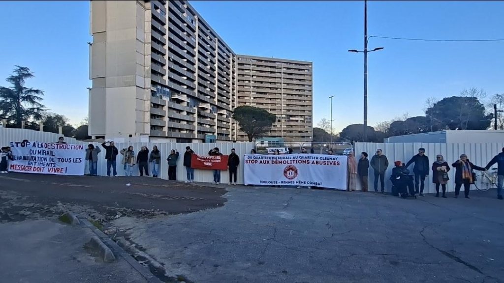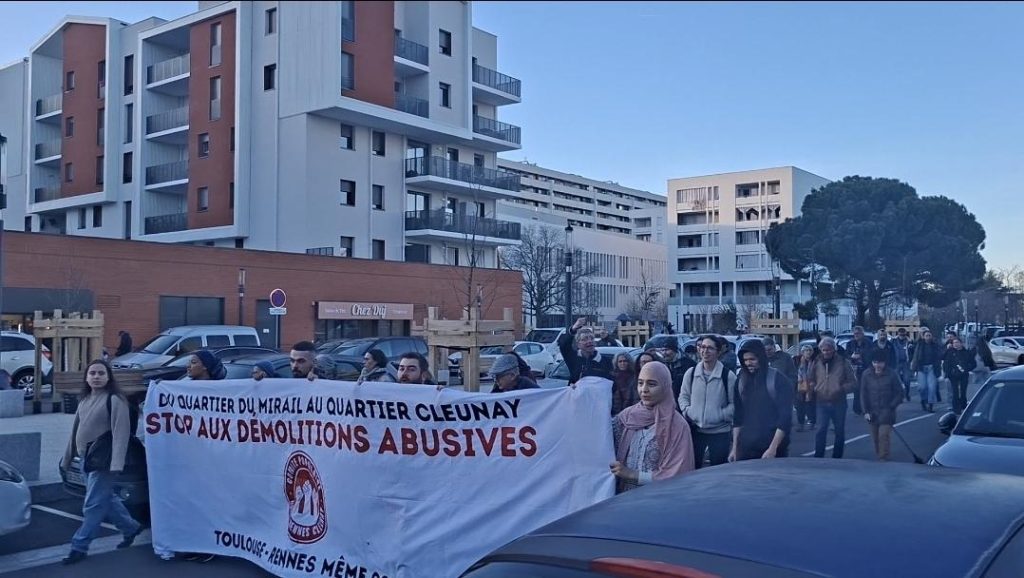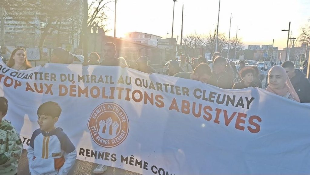 Un fait notable, témoignant de l’unité des luttes des habitants des quartiers populaires partout en France, fut la présence d’une délégation des CPES de Cleunay et de Villejean, quartiers de Rennes. Ces camarades ont pu mettre en lumière dans leur discours les mêmes mécanismes anti-peuple mis en place dans les politiques de « renouvellement urbain » par des mairies « de gauche » à Rennes comme de droite à Toulouse : « On sait, grâce à votre mobilisation et vos alertes sur la fermeture de vos collèges, c’est le premier domino qui pourrait tomber dans le quartier et qui fera peut-être tomber des tours. À Cleunay, à Rennes, on a le même combat qu’au Mirail et ailleurs dans les quartiers populaires de France. Ce n’est pas que du béton qu’on détruit, c’est du lien social à travers notre voisinage, l’école, les rues et les places. Parce qu’effectivement on a aussi un projet de démolition qui est sous la mairie socialiste, un projet de démolition de notre quartier. Donc ce sont nos parents et nos grands-parents ouvriers qui ont bâti ces murs et qui peuvent y vivre ainsi que leurs enfants et petits-enfants à un prix abordable aujourd’hui.Plutôt que de réhabiliter les logements existants, le bailleur Néotoa, la mairie socialiste de Rennes et l’État qui invoquent pourtant sans cesse la dette, le manque de fonds et une écologie de façade, préfèrent privilégier la démolition-reconstruction, une option plus goûteuse qui alimente la spéculation immobilière et enrichit les marchands de sommeil sur le détriment de la classe ouvrière. »