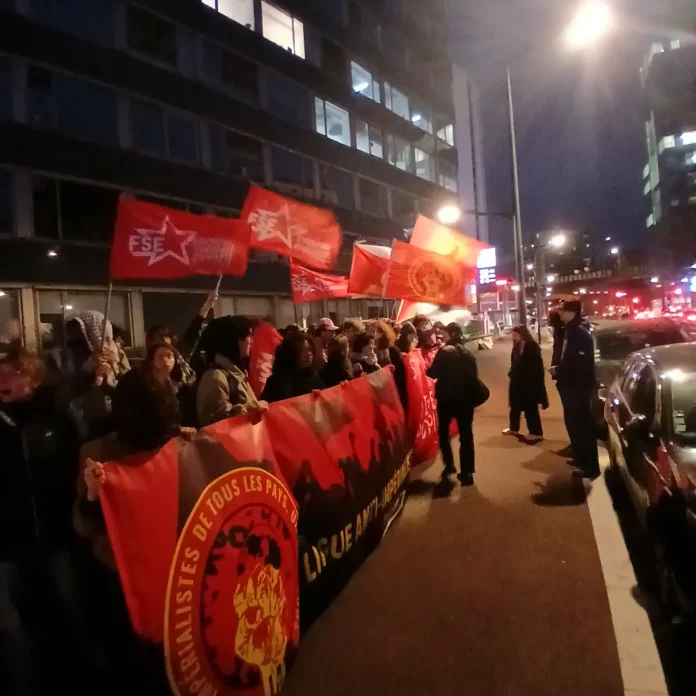 Car il ne faut pas se tromper : si les impérialistes déploient de tels moyens dans une répression aussi sanglante, c’est bien parce qu’ils ont peur. Les masses indiennes, dirigées, avancent sûrement dans la voie révolutionnaire et vers la victoire. Face à cette issue inévitable, la violence des fascistes réactionnaires et des impérialistes aux dents longues se déchaîne. Mais malgré les massacres, les masses indiennes poursuivent la lutte, debout, déterminées, et peuvent compter sur la solidarité active des révolutionnaires du monde entier. Le 12 février, la Ligue anti-impérialiste France, section française du mouvement international, a appelé à une journée de mobilisation. Plusieurs organisations et collectifs, principalement au sein de la jeunesse, ont participé à des initiatives de soutien à la Guerre Populaire en Inde. Dans plusieurs villes, des actions de graffitis en soutien à la guerre populaire et de dénonciation de l’opération militaire ont été réalisés afin d’informer le plus grand nombre des crimes de l’État indien, dissimulés par les médias dans les centres impérialistes. À Paris, plus d’une cinquantaine d’activistes se sont rassemblés devant le consul d’Inde pour affirmer leur soutien aux révolutionnaires indiens et à leur glorieuse Guerre Populaire. Ces initiatives ne sont qu’un début. Une vague de solidarité doit s’étendre et se renforcer, car si l’ennemi déploie une répression aussi féroce, c’est qu’il sait les révolutionnaires en progression avec, à leurs côtés, la solidarité active de leurs camarades du monde entier.