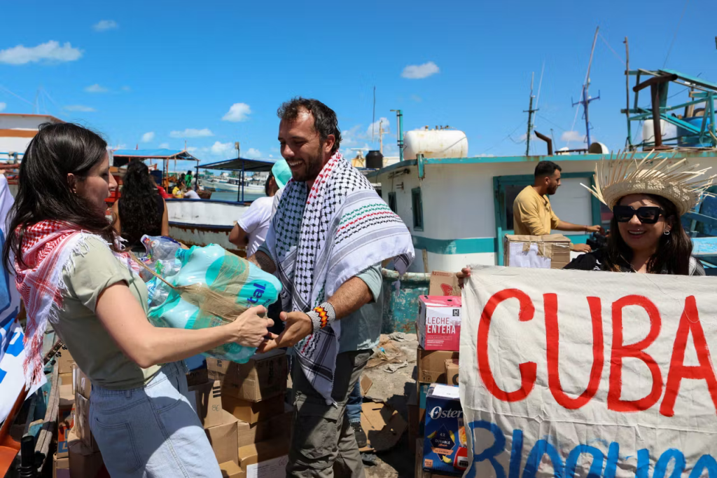 A l’échelle internationale, la solidarité populaire s’organise aussi pour soutenir le peuple de Cuba. De premiers envois de vivres et de fournitures médicales sont arrivés la semaine dernière, par avion, depuis l’Europe et les États-Unis, dans le cadre de la mission « Nuestra America » (Notre Amérique). Une flottille de dizaine de bateaux s’organise aussi dans le cadre de cette campagne pour ravitailler l’île, avec la participation de militants de plusieurs pays d’Amérique Latine. Arrivés hier, ces premiers matelots solidaires ont posé le pied sur l’île en brandissant une banderole arborant « Let Cuba live » (Laissez Cuba vivre).