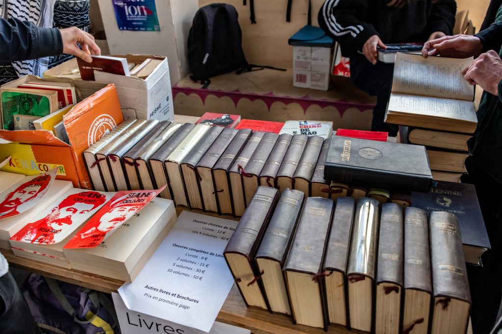 La suite de la matinée, les participants ont assisté à la projection du film Un pays qui se tient sage, à propos de la lutte des Gilets Jaunes, en particulier sur l’intensité de la répression policière. Beaucoup des Jeunes Communistes étaient alors des enfants ou adolescents, qui ont grandi avec en tête les images de la répression. La projection a été suivie d’un débat, sur la couverture médiatique de la révolte et la légitimité de la violence : « Les images sont saisissantes, ça nous replonge vraiment dans la boucherie pratiquée par la bourgeoisie durant cet acte de révolte. Mais je trouve dommage que le film laisse une très grande place aux états d’âmes de la petite bourgeoisie humaniste française, qui prétend découvrir la réalité de la violence d’État. […] Il n’y a rien non plus sur qu’est ce qui a été à la source de la lutte des Gilets Jaunes, comme les bas salaires, ou simplement leur place de producteurs », argumente une participante.